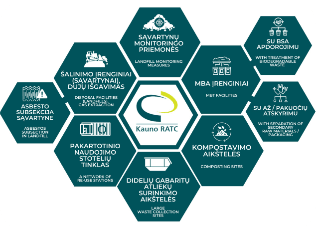 Kauno RATC eksploatuoja du atliekų apdorojimo įrenginius – Kauno mechaninio biologinio apdorojimo (MBA) ir Zabieliškio mechaninio rūšiavimo (MAR) įrenginius. Juose mišrios komunalinės atliekos rūšiuojamos, atskiriamos perdirbimui tinkamos medžiagos bei stabilizuojamos biologiškai skaidžios frakcijos. Ši veikla padeda mažinti atliekų kiekį sąvartynuose ir skatina žiedinę ekonomiką.